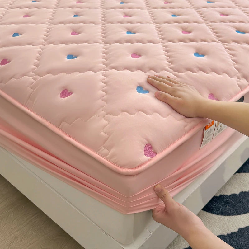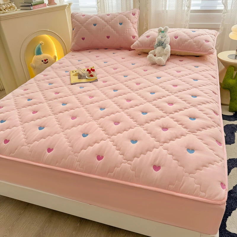 Bonenjoy Bed Cover Embroidered Mattress Cover Quilted Bed Linen Thickened Fitted Sheet Home Bedspread 매트리스커버 (No Pillowcase)